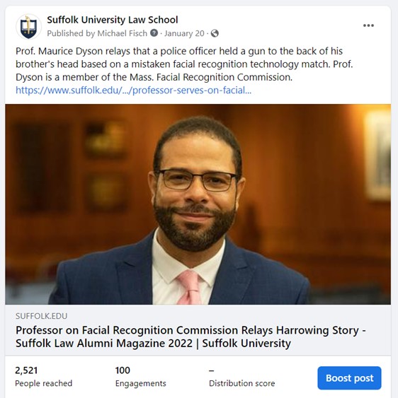 This post addressing a professor’s harrowing experience with facial recognition technology reached 2,500 people. It’s an important story addressing complex legal issues.