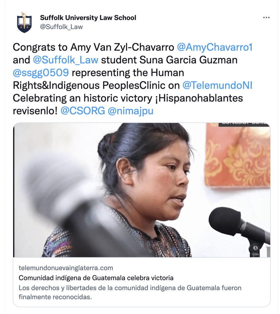 Major news outlets shared Suffolk students’ human rights court victory on their social media feeds. Getting stories covered was a challenge because of the pandemic.